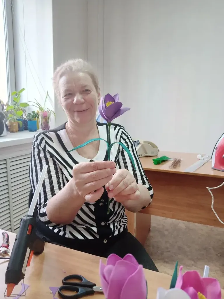 Из фоамирана, проволоки и специальной ленты мы творили весенние цветы! А помогал нам в этом - утюг, ведь для того чтобы из резинового листа (фоамирана) получился лепесток надо его нагреть или растерять пальцами.